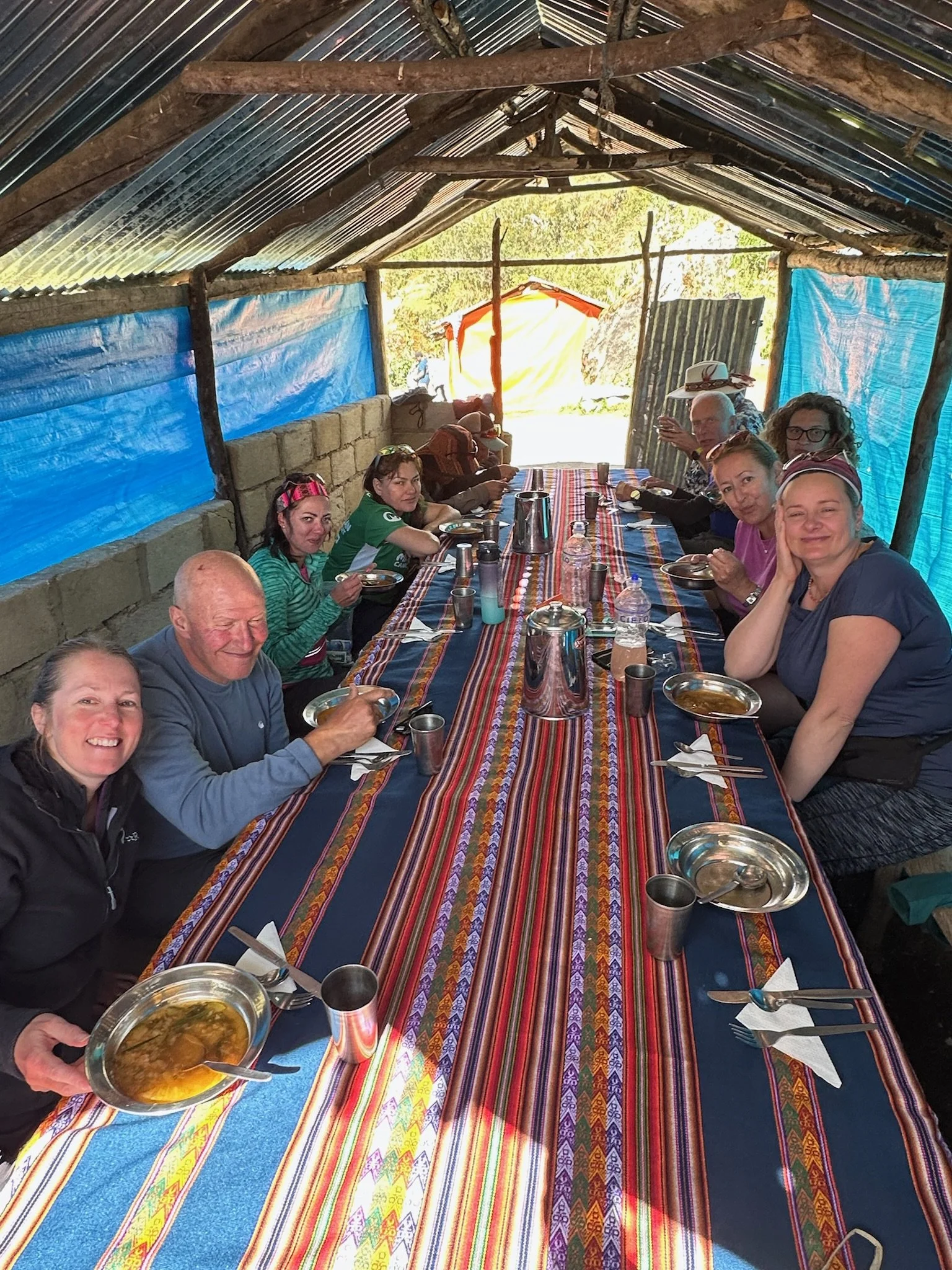 In the afternoon you’ll descend through the cloud forest, a beautiful rainforest ecosystem, in the mountain valley, to the cosy campsite at Chaullay, and a delicious feast to reward you for the day’s efforts.